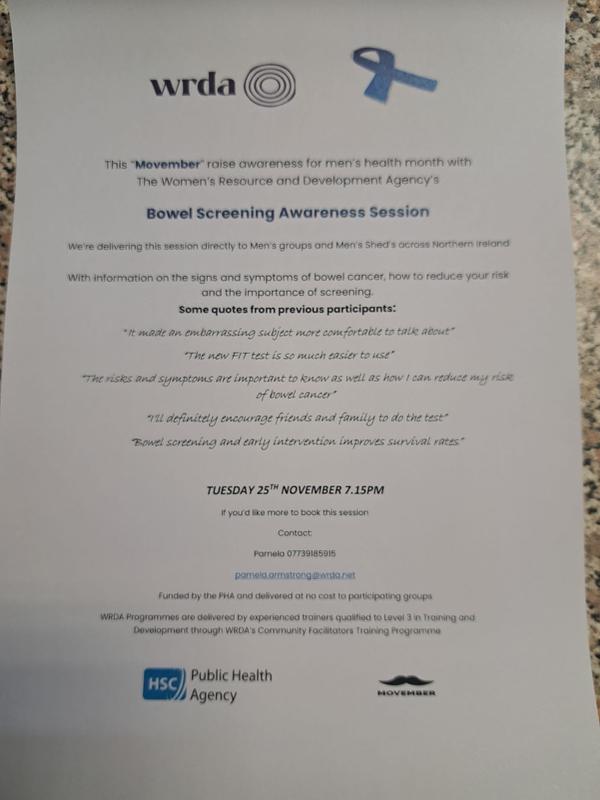 This Movember, weβre hosting an important Bowel Screening Awareness Session delivered by the Womenβs Resource & Development Agency (WRDA).